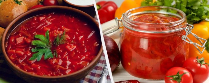 Användbar och välsmakande dressing i burkar gör att du kan förbereda borscht på 20 minuter.