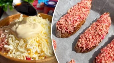 Receptet på läckra bruschetter med krabbfyllning delades av den ukrainska matbloggaren @vistovska_cooking i TikTok.