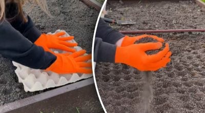 För perfekt sådd av morötter kan du använda vanliga äggbrickor. Med hjälp av dessa kan du snabbt och enkelt göra perfekta hål i marken och sedan placera ett frö i varje hål.