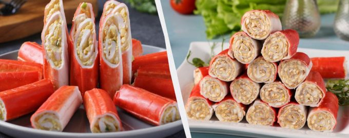Mjuka krabbstickor med smakrik fyllning – den perfekta kombinationen. Recept fyllda krabbpinnar / collage My, foto depositphotos.com Krabbstickor